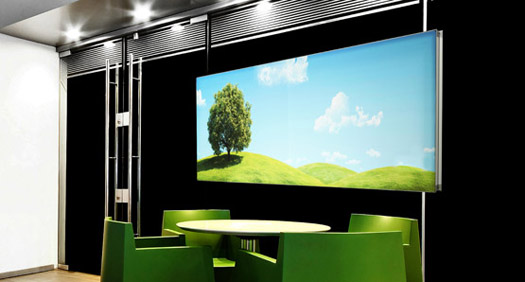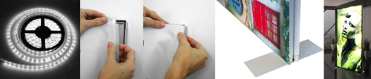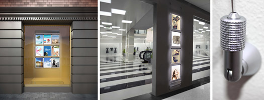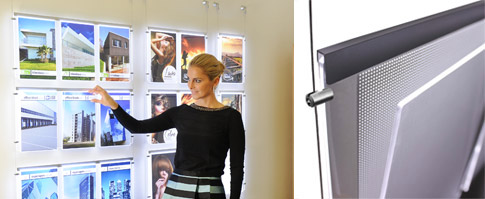 fly shine LED-Rahmen für die Wandmontage revolutionieren die Präsentation Ihrer Angebote, Informationen, ...! Die mit LED beleuchteten, einseitigen Posterhalter werden einfach an die Wand montiert, deckenabgehängt oder als Raumteiler mittels Seilsystem zwischen Boden und Decke gespannt.