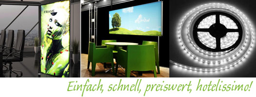 Sehen aus wie Sie möchten, folgen z. B. optisch den Jahreszeiten, präsentieren Angebote, informieren, helfen verkaufen, halten viel aus und sind preiswert wie einfach im Handling. Da freuen sich Hoteliers!
