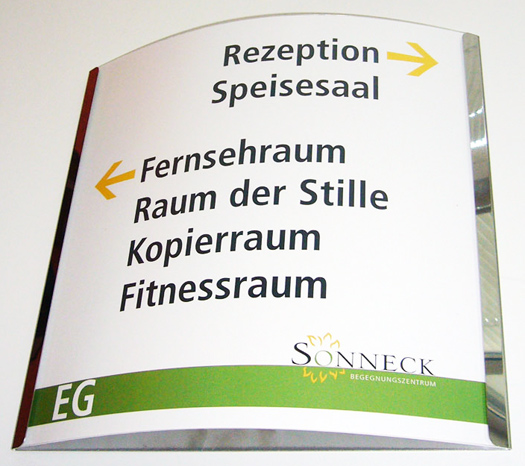 Handling: Mit wenigen Handgriffen zu aktualisierendes Schild (Ausdruck der Einlageblätter via PC).