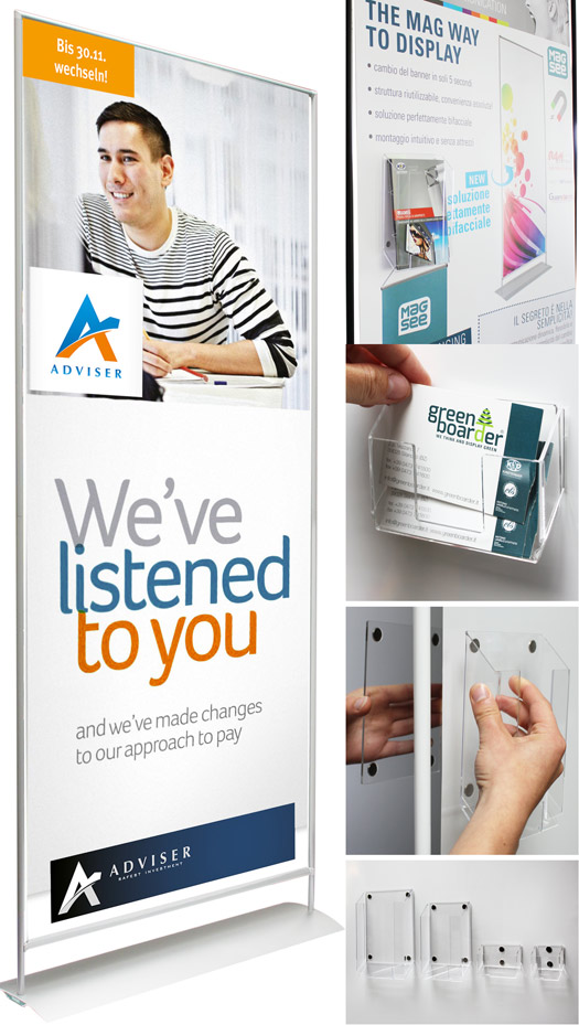 Displays und Banner sind bei unserem neuen System unter dem Motto "schnell, einfach, günstig" in besten Hänen!
