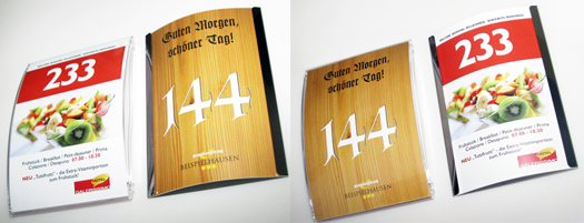 Zu den Vorteilen all unserer Schilder gehören neben Funktionalität und Design die Top-Qualität und das einfache Handling. Bei Design und Grafik unterstützen wir Sie gerne, der Ausdruck von Einlageblättern in DIN-Formaten läuft über jeden modernen Office-Drucker.